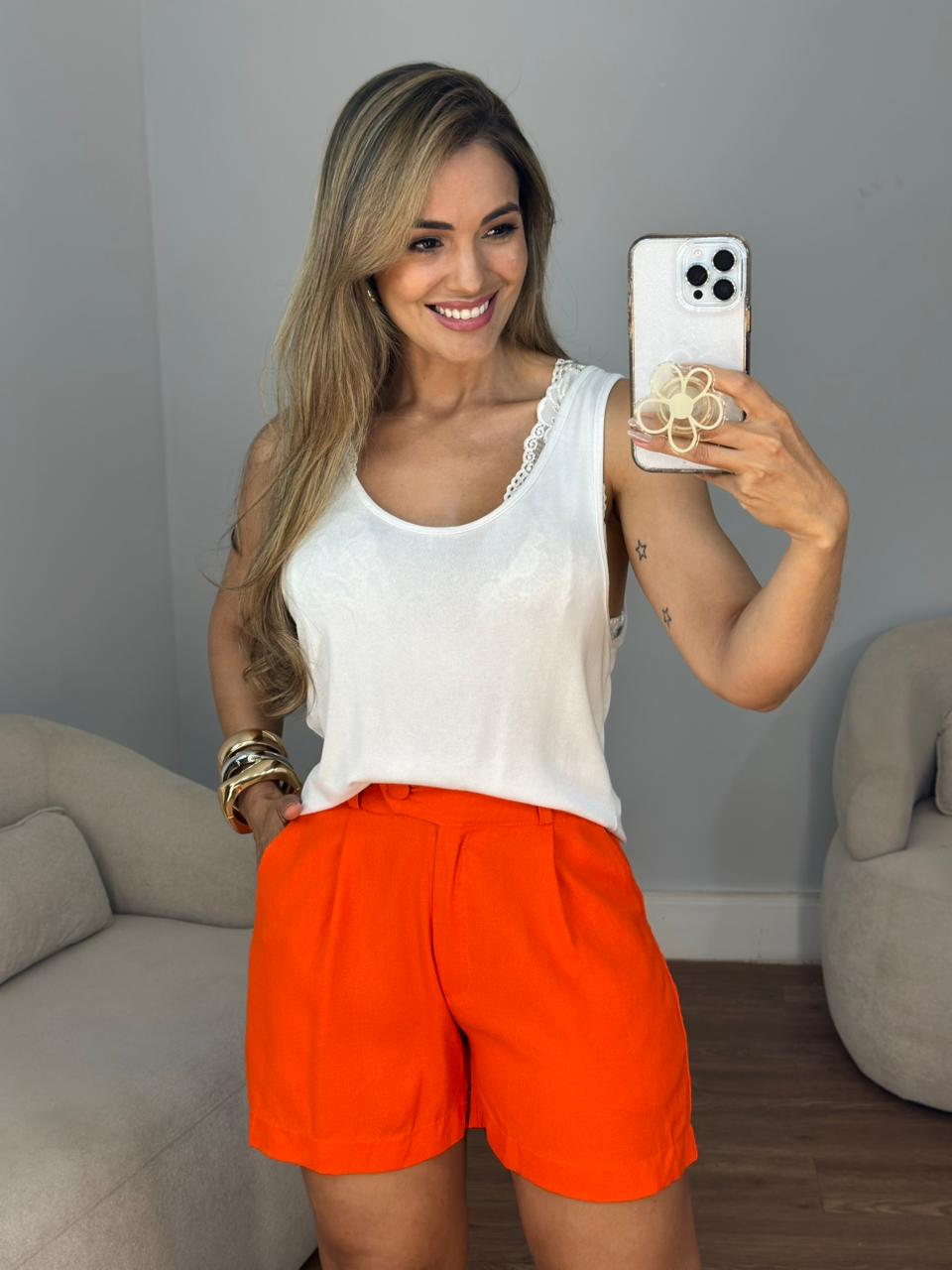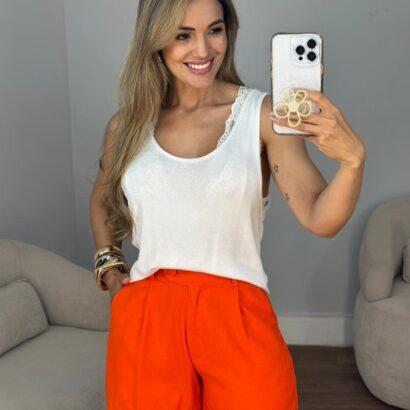 Bermuda linho meia cocha botões forrado