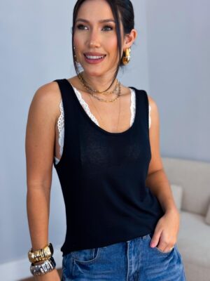 Blusa colete alfaiataria botão tartaruga alça