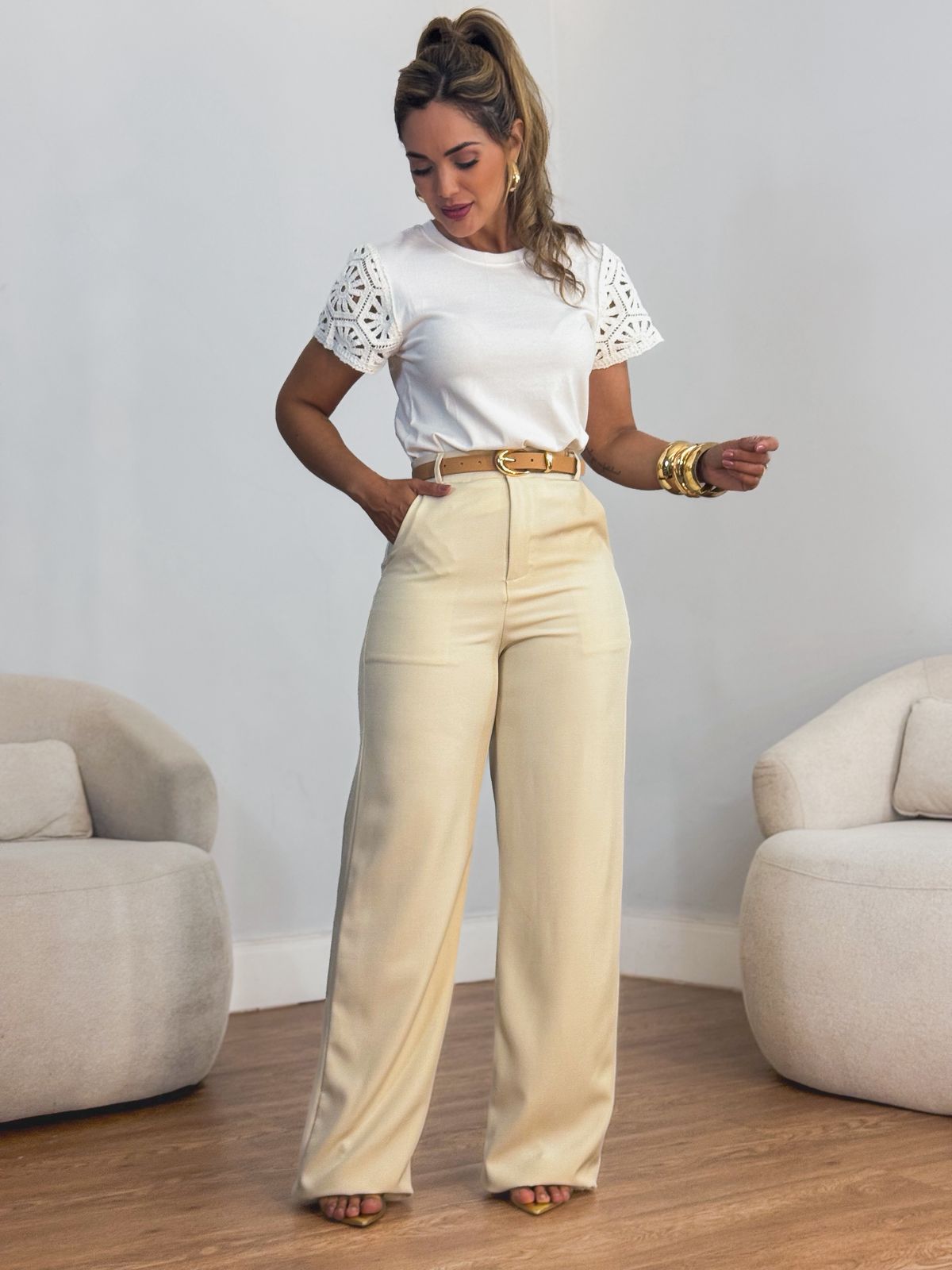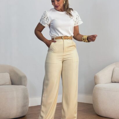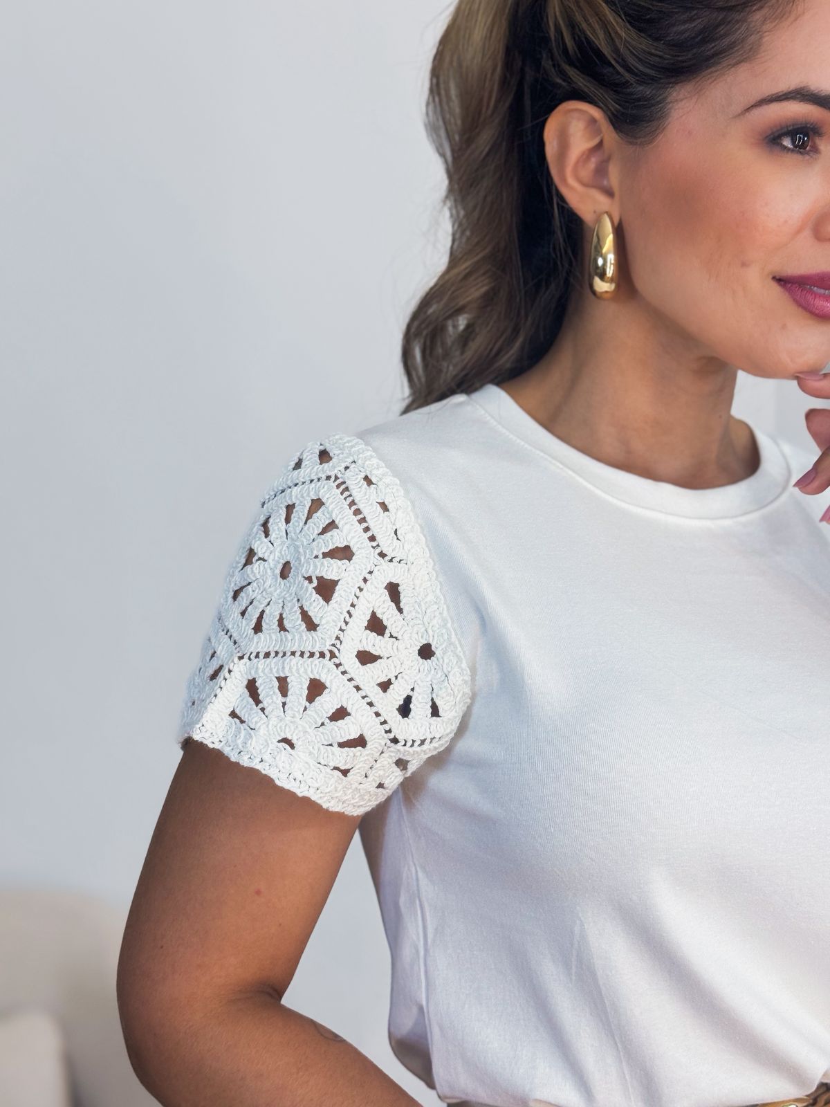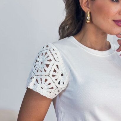 Blusa te-shirt manga crochê