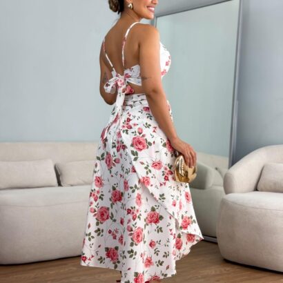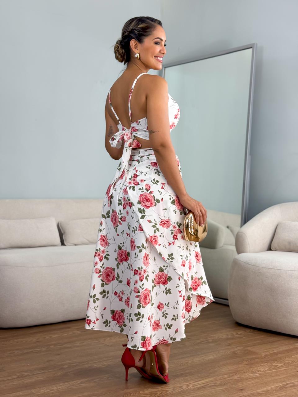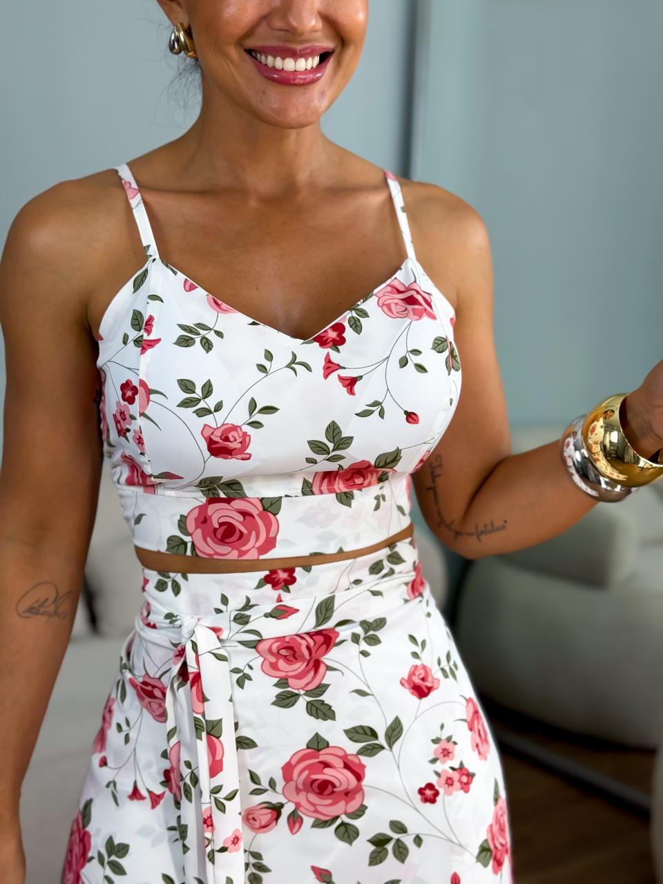 Conjunto saia pareô + cropped frente única crepe seda