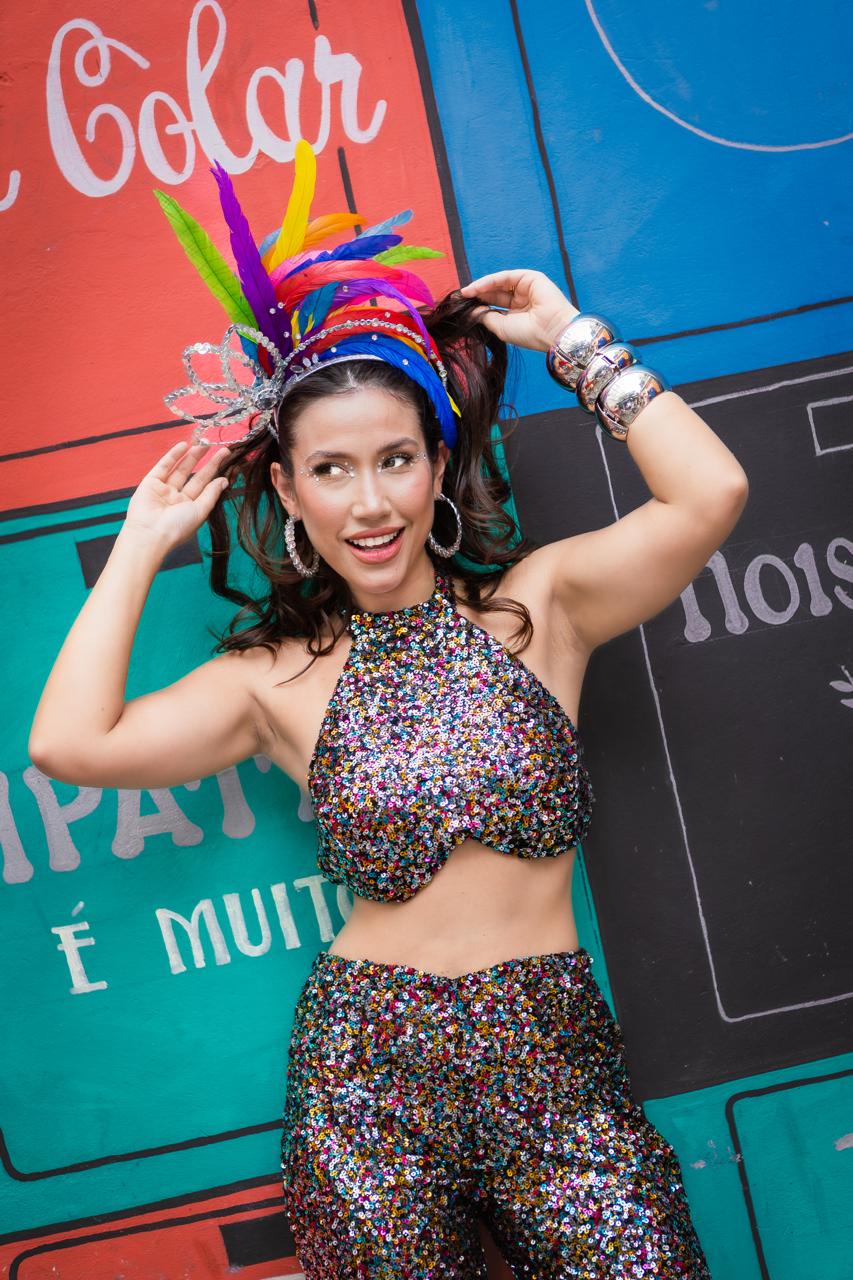 Cropped paetê estampa multicor frente única básico