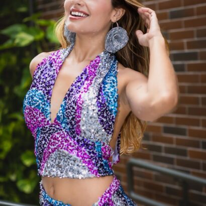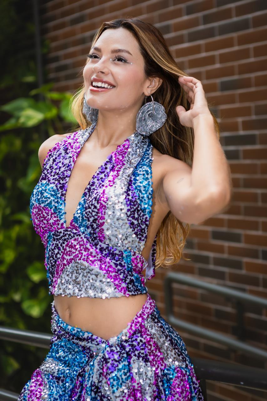 Saia paetê estampa multicor folho amarração