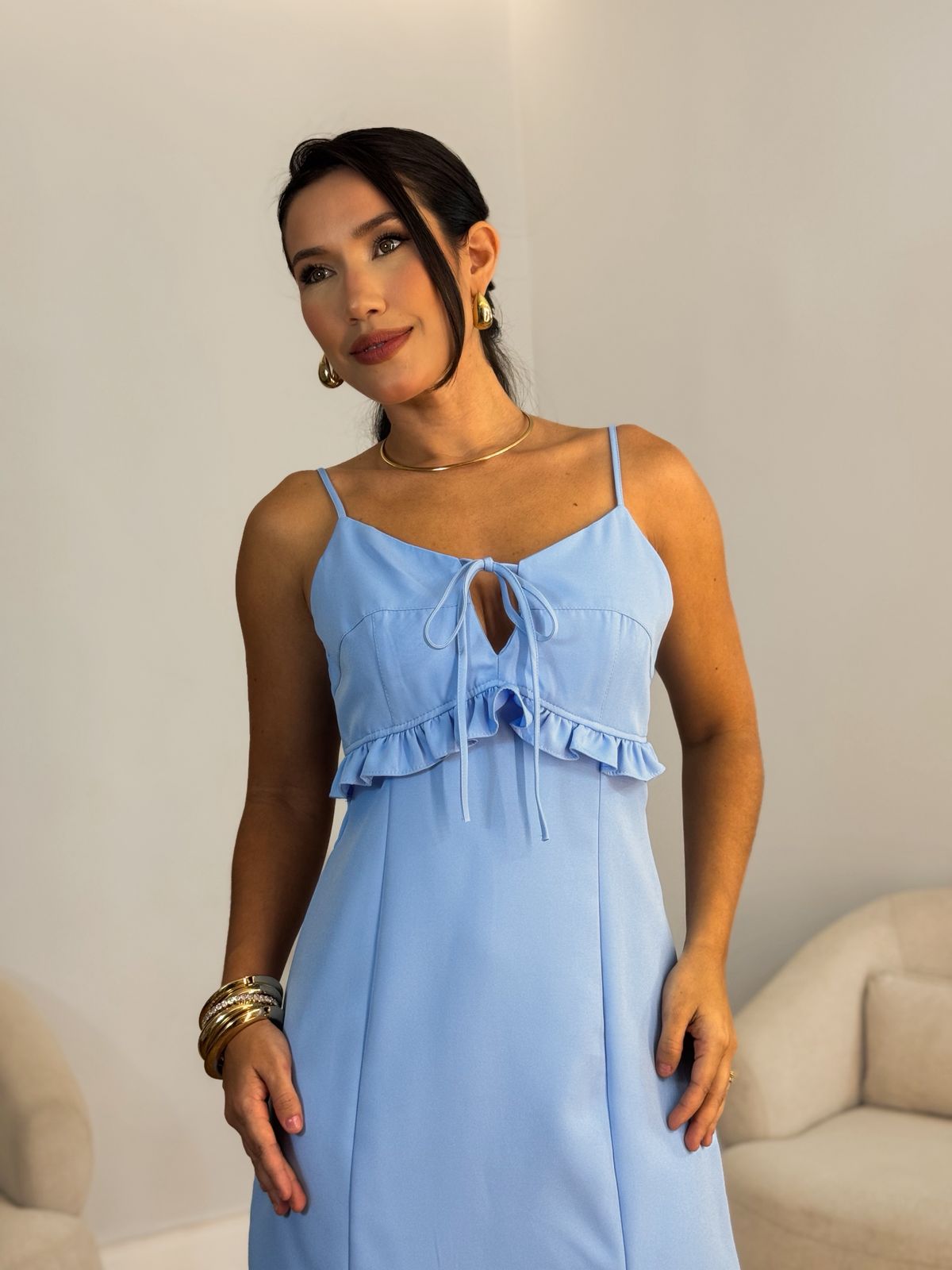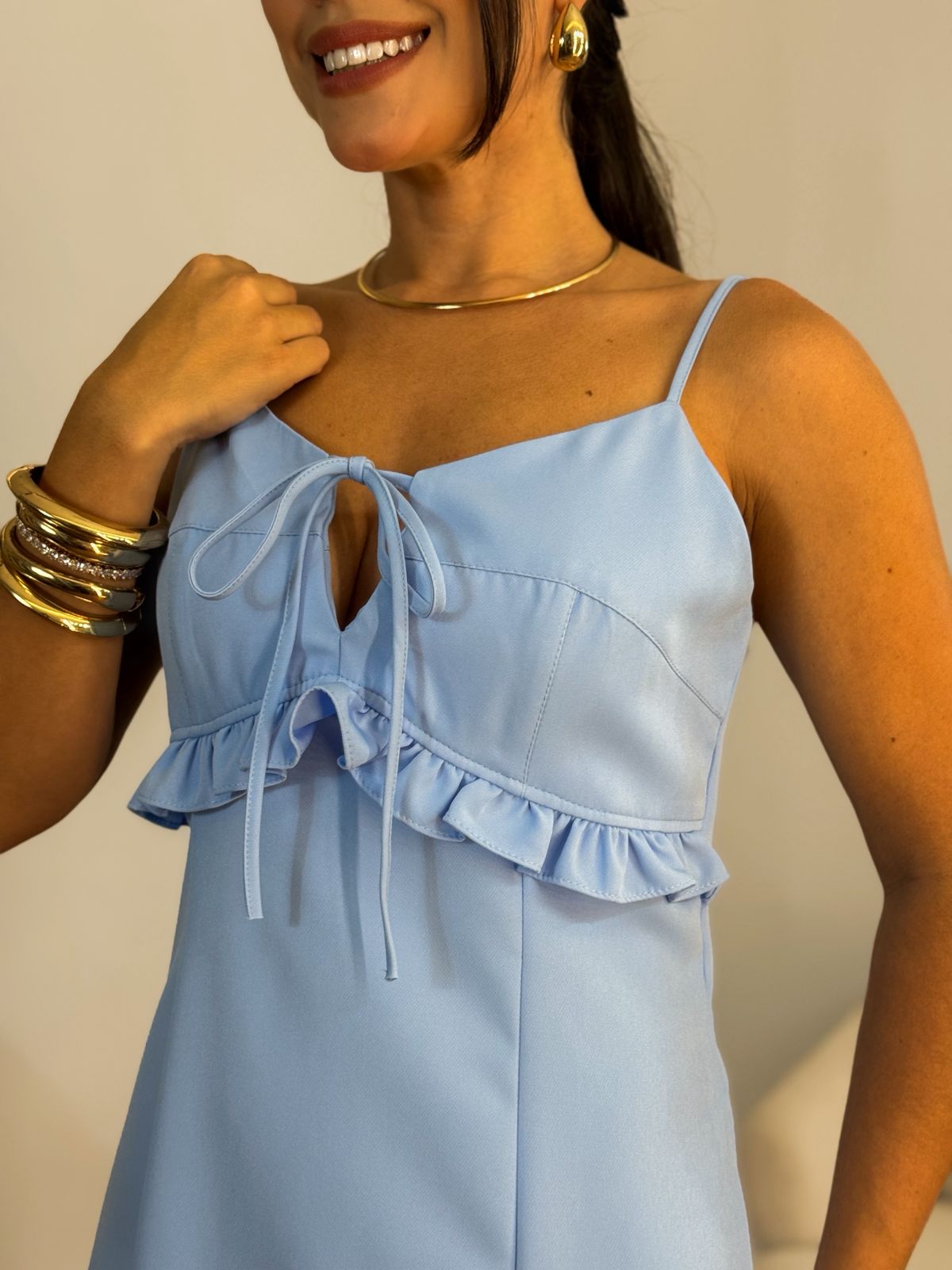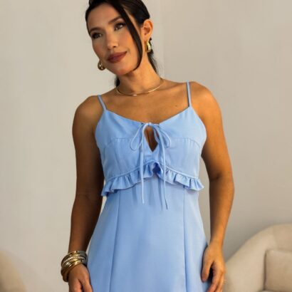 Vestido alfaiataria alça babado no peito