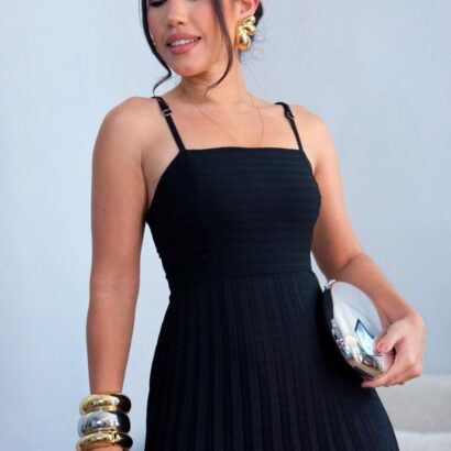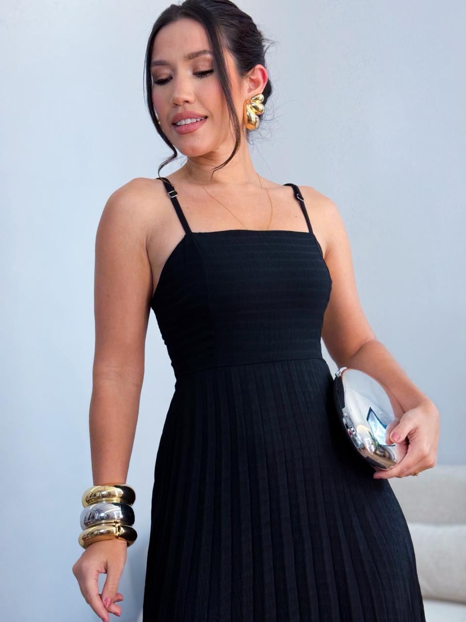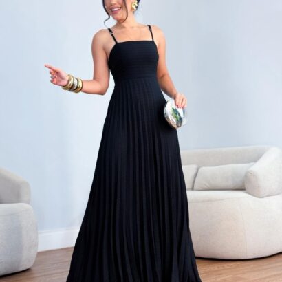 Vestido duplo plissado peito reto