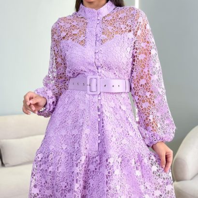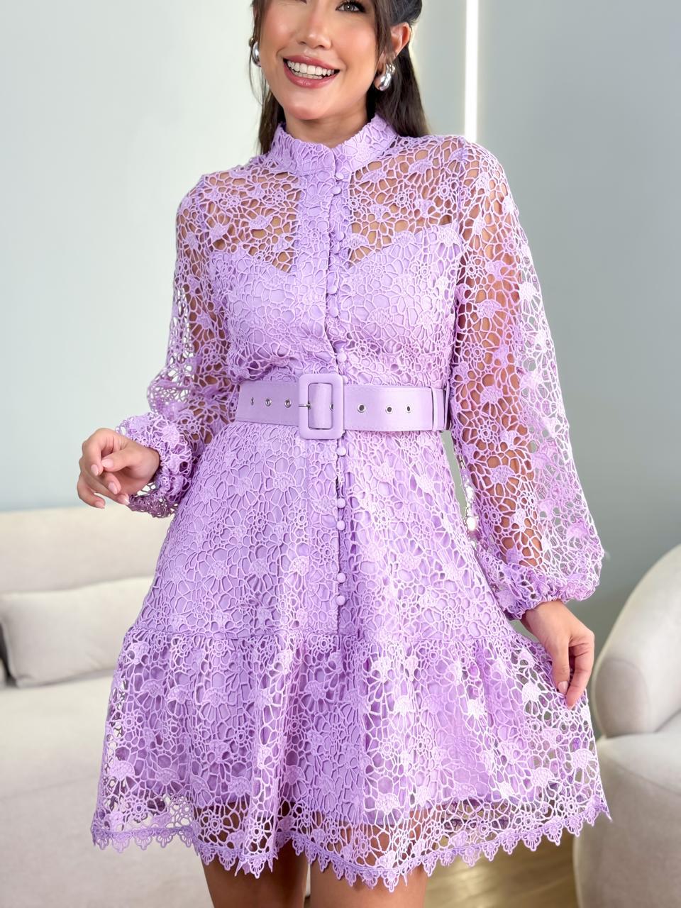 Vestido import guipiz manga longa total botão peplum com cinto