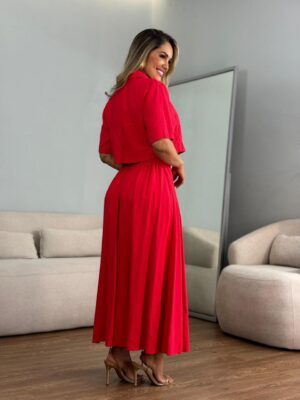 Vestido longo renda arrastão com hot pant 111111111111 ombro argola