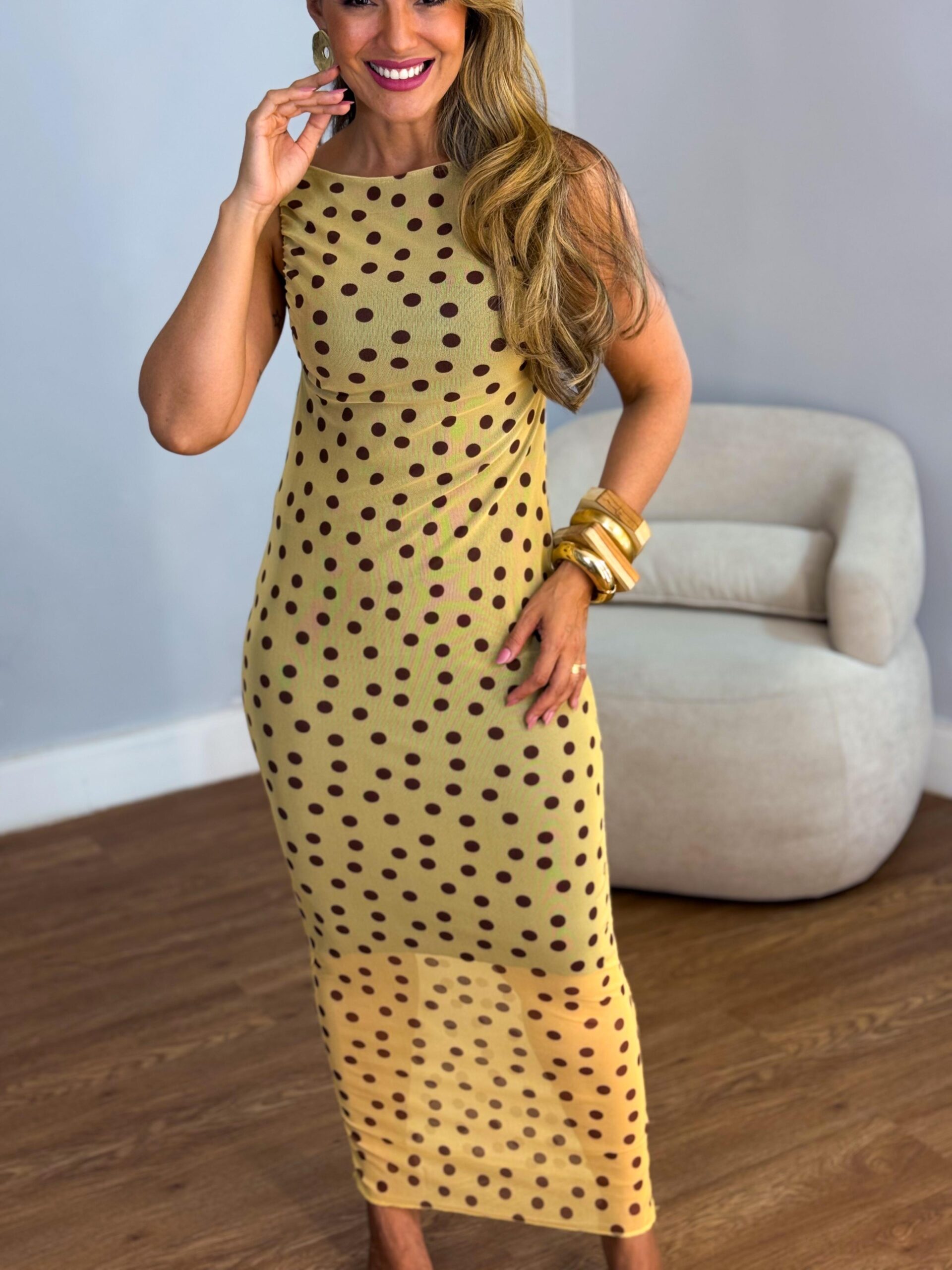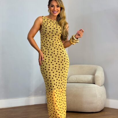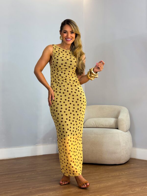 Vestido tule regata gola canôa midi alongado poar